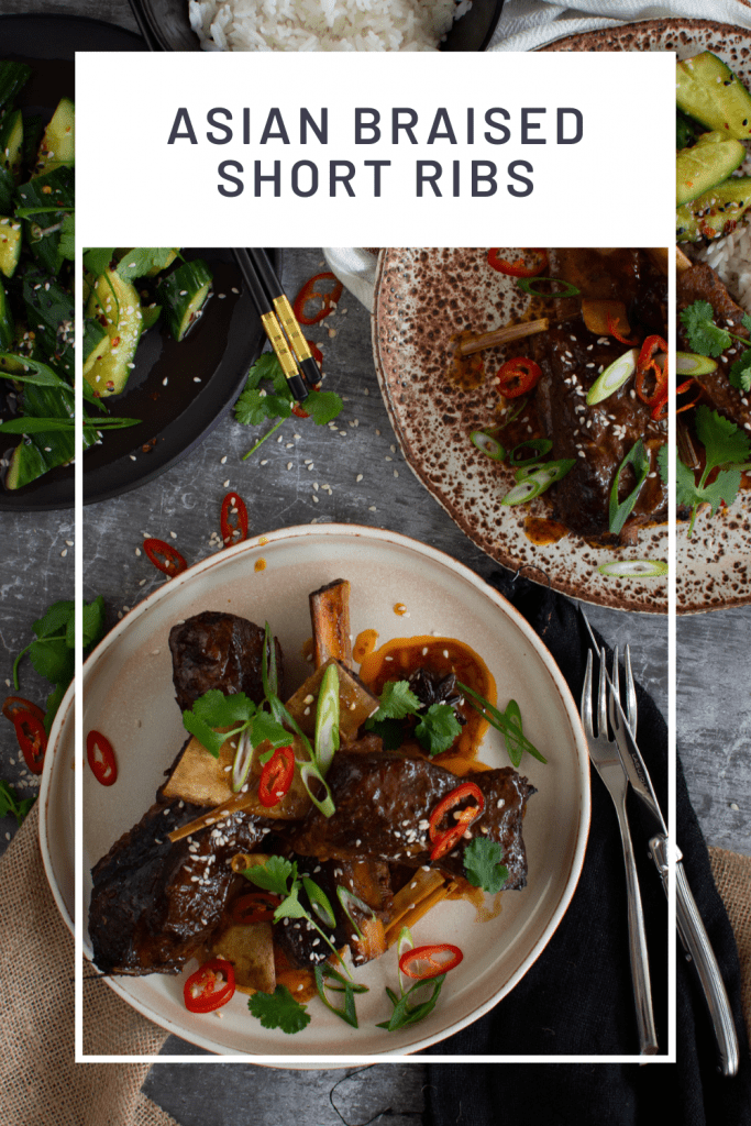 For my Asian version, I would recommend some simple steamed rice and maybe a refreshing smashed cucumber salad. The braising liquid works perfectly as a sauce, and the rice will soak it all up, but the freshness of the cucumber balances the flavours out greatly.