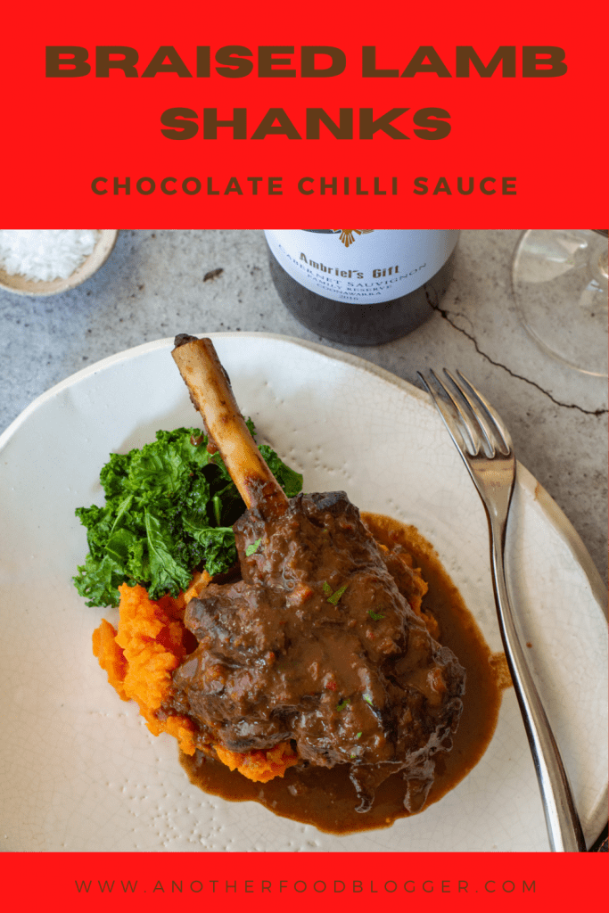 Braised lamb shanks are when you sear the lamb in fat (typically oil) and then cook it in a liquid. In this case a delicious red wine chocolate sauce for a number of hours