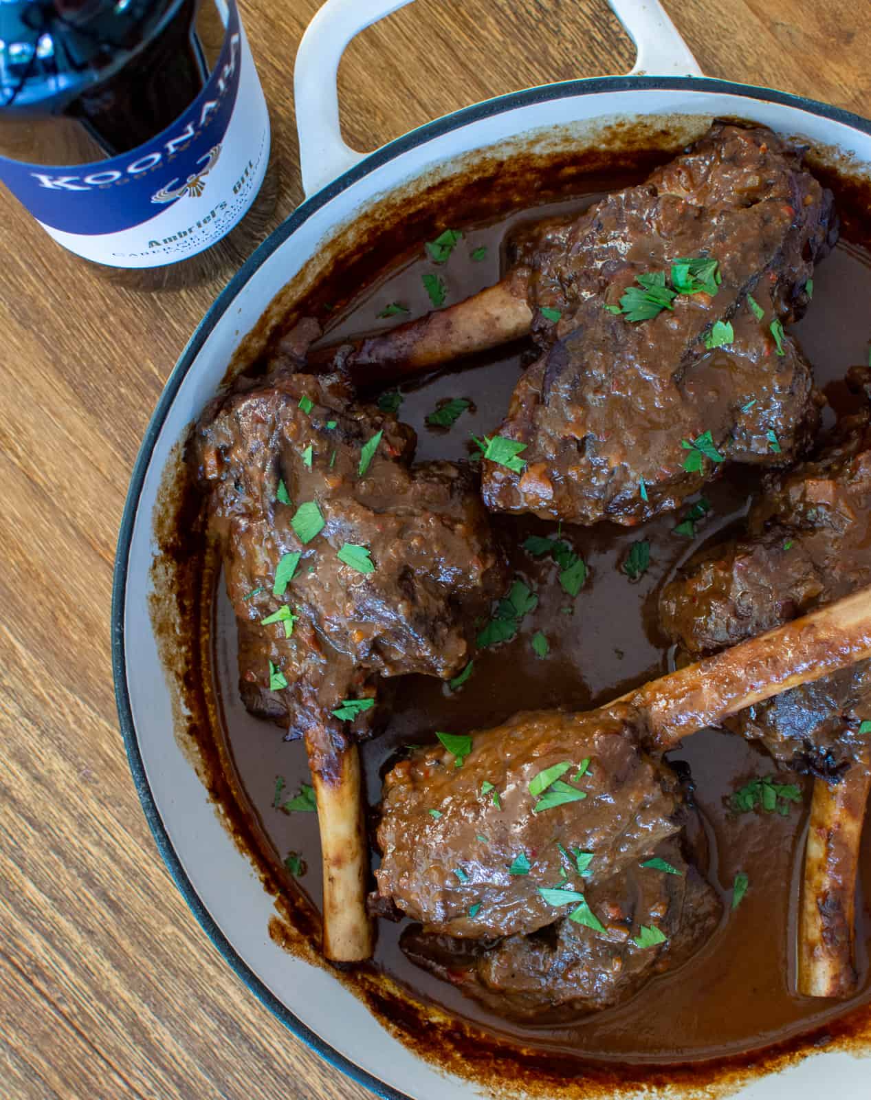 Coming into winter here in Australia it's all about drinking reds to warm you. Filling the home with those beautiful rich aromas of slow-cooked food. I love to braised lamb shanks like I do many cuts of meat as you can simply leave them alone and allow the delicious red wine chocolate sauce to work its magic in the oven. You can literally spend about 10-20 minutes getting it ready and into the pot. Then, just leave it to cook away as you get on being a domestic "god".