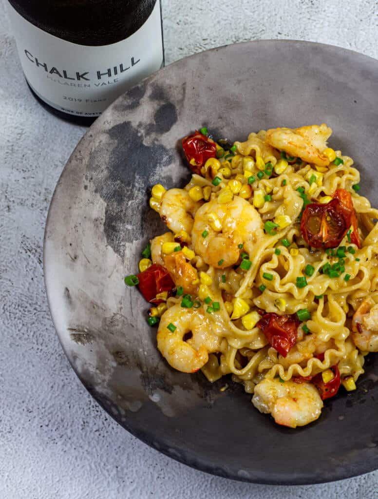 The Chalk Hill fiano offers tons of delicious apricot, zesty citrus which only make the brown butter prawn pasta all the more better. I get whipped cream, hazelnuts and a little chalkiness too from it. There is a nice salinity from it, almost in the form of oysters. The finish has decent length and is drinking PERFECTLY right now. Spring is just around the corner here in Australia so my advice is to grab a 6pck and get ready for some warmer temps!
