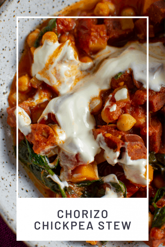 This chorizo and chickpea stew is so frickin good you could easily just serve it as is. But, for those of you who know, follow and love what I do will know that I like to take my garnish, oils and accoutrements to another level 😉