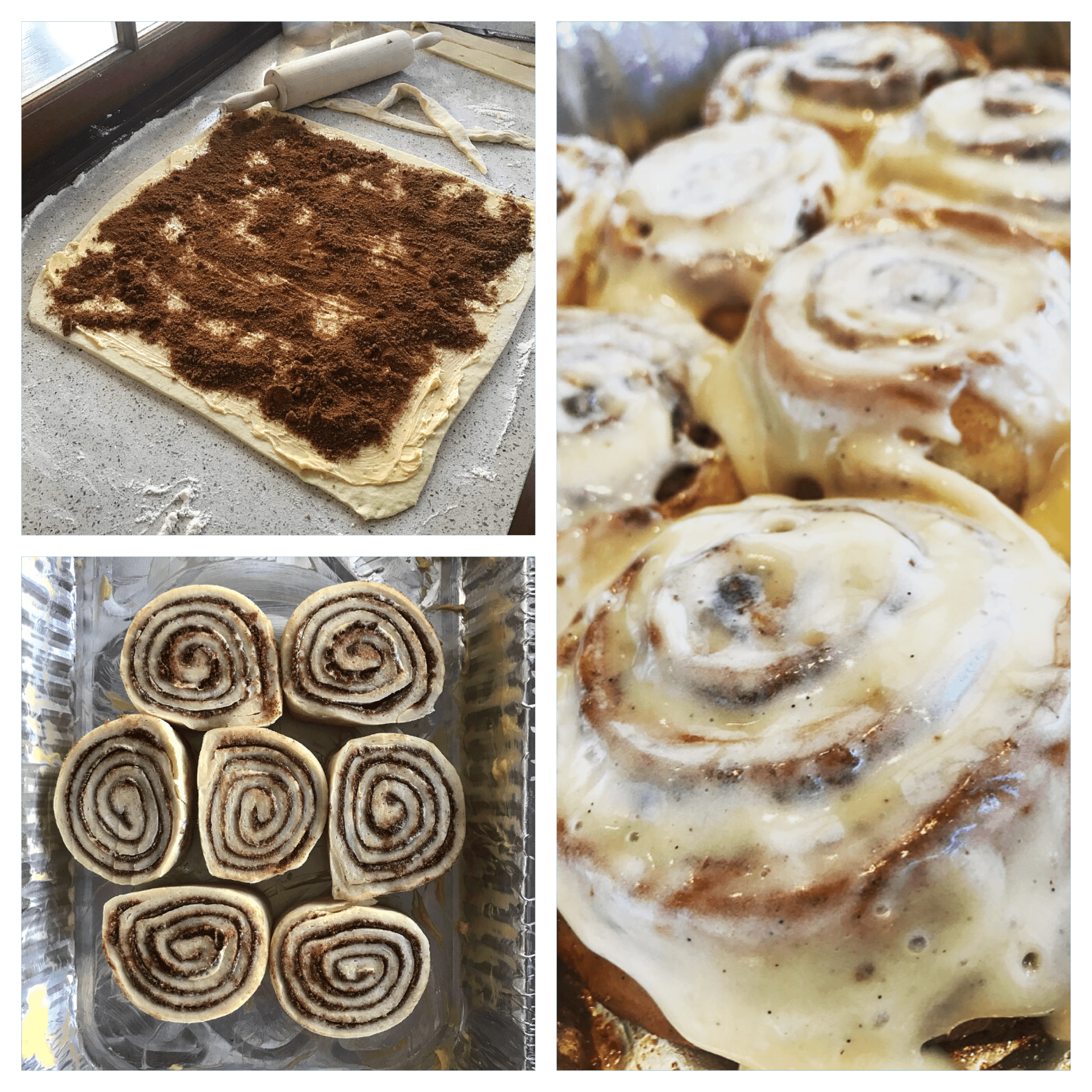 First off I have to admit I would be lying if this was completely my own recipe. I found it online sometime ago and when I made them my mind was blown with how good they were. I edited it VERY slightly and have been making them for a few years now and they are honestly just as good as the Cinnabon ones. If I could remember where I got the recipe I would give it/them a shout out but I wrote it down so long ago that I can't honestly remember. So HUGE THANKS!!!