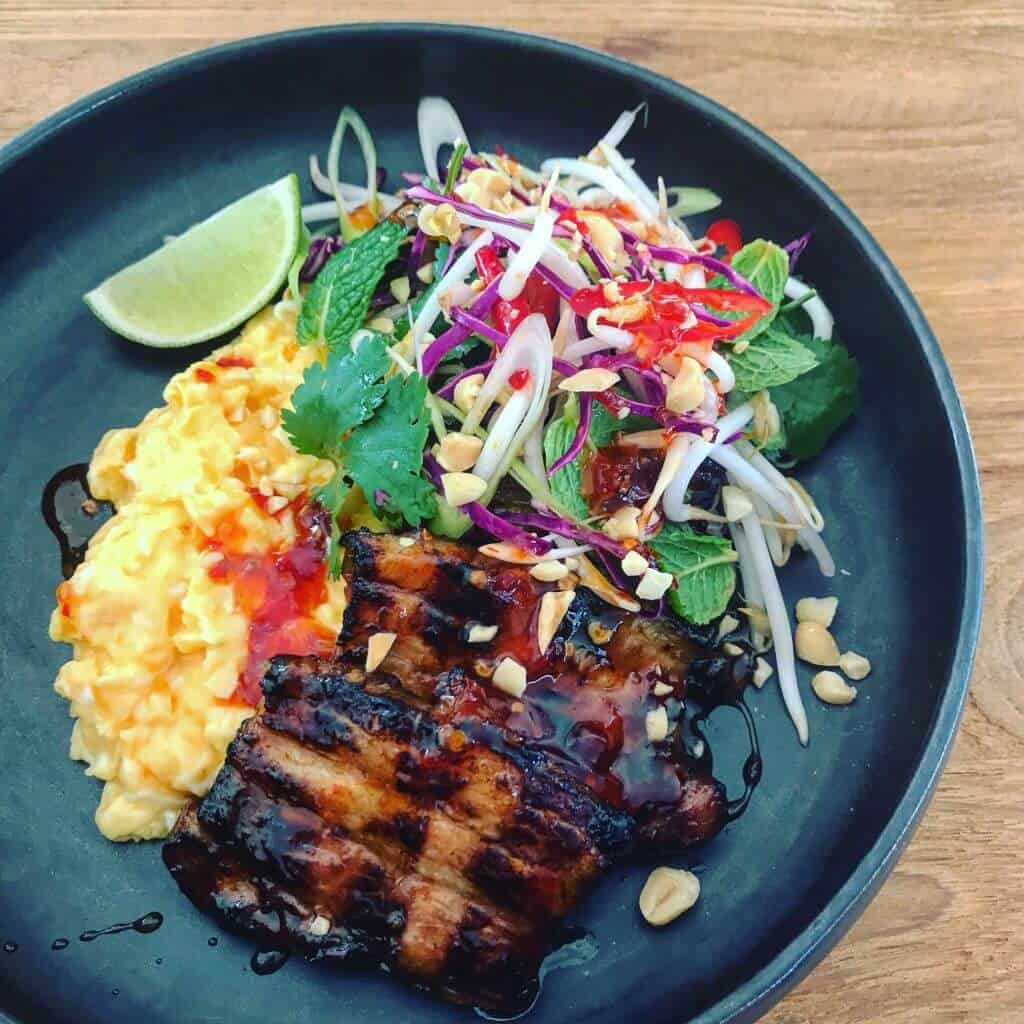 Brunch, is something my wife ADORES. These days with having a 2yr old we don't get out as regularly as we used to. When we do it's typically order ASAP and eat it quicker than it takes to cook before the carnage of said 2yr old takes over. Then we are off to the local park/playground for some swing time. So this dish had both me and my wife in mind when using pork belly but pairing it alongside some beautiful scrambled eggs.