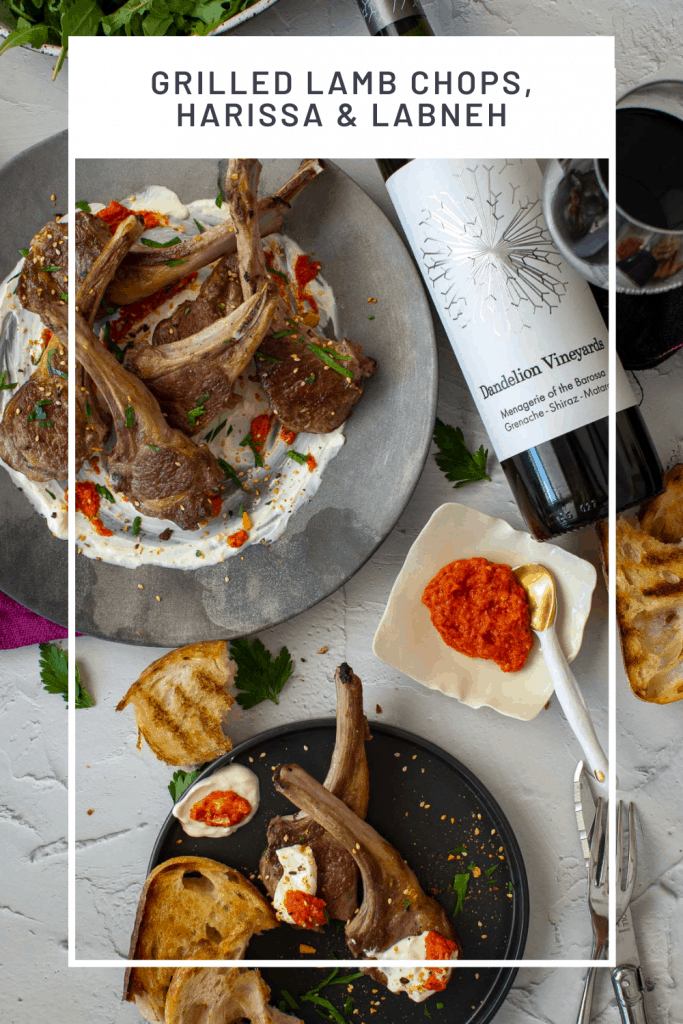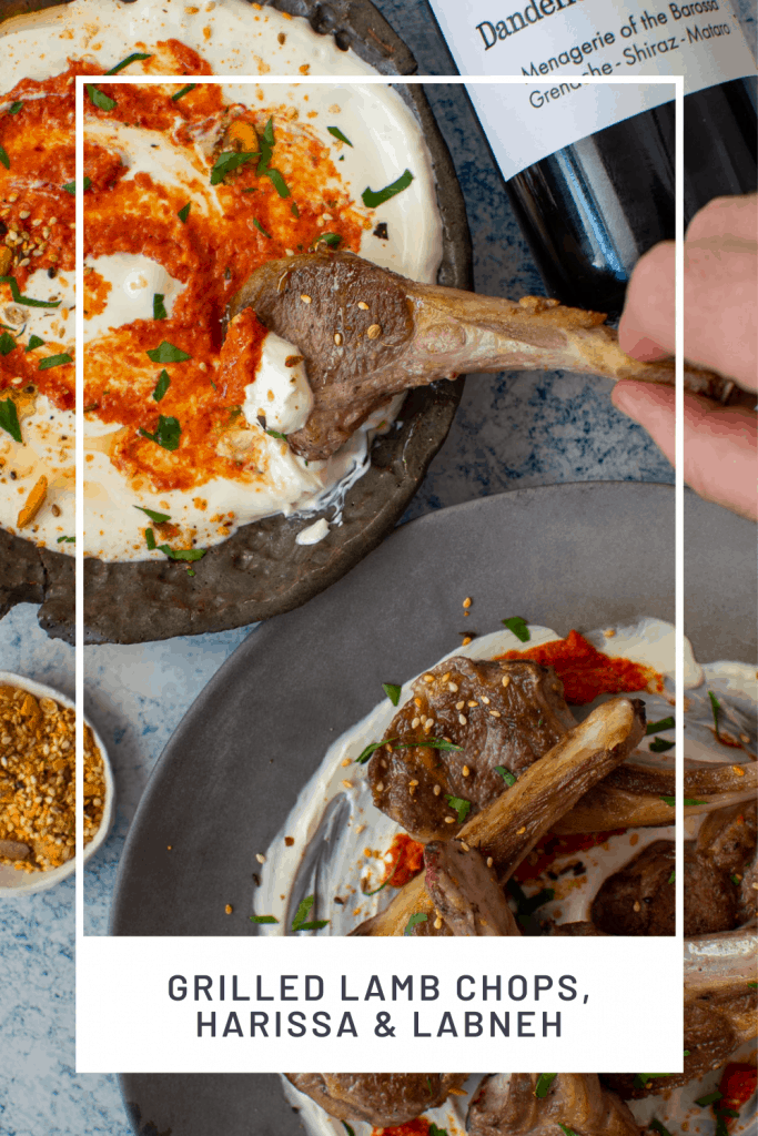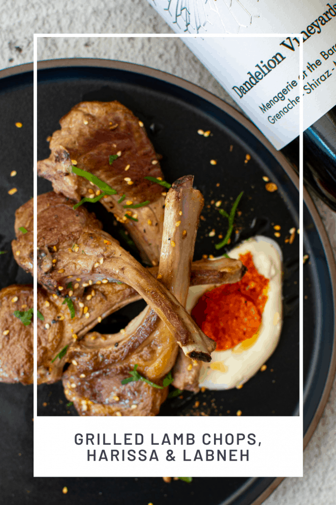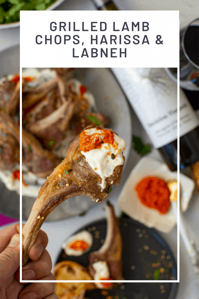 My grilled lamb chops dish is kinda designed to be eaten as a lamb 'lollipop'! Just grab a chop and dunk it in the delicious homemade harissa and creamy labneh. Don't forget to double fist by having a delicious glass of wine in the other hand 😉