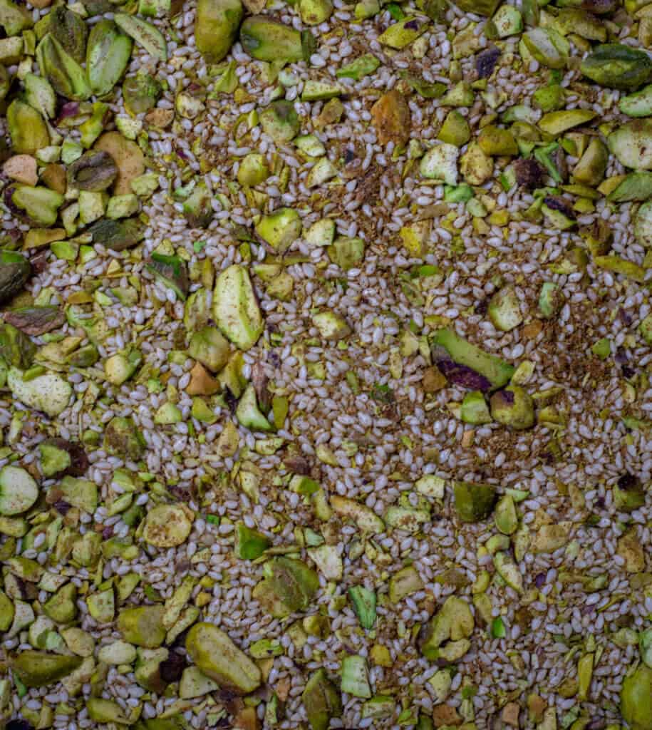 I'm in love with this stuff. 5 ingredients - 4 of which you just toast in a pan, the other simply chopped and mixed in at the end. It doesn't get any easier than homemade pistachio dukkah. Plus the joy of it too is it will keep for a few weeks in an airtight container in the pantry.