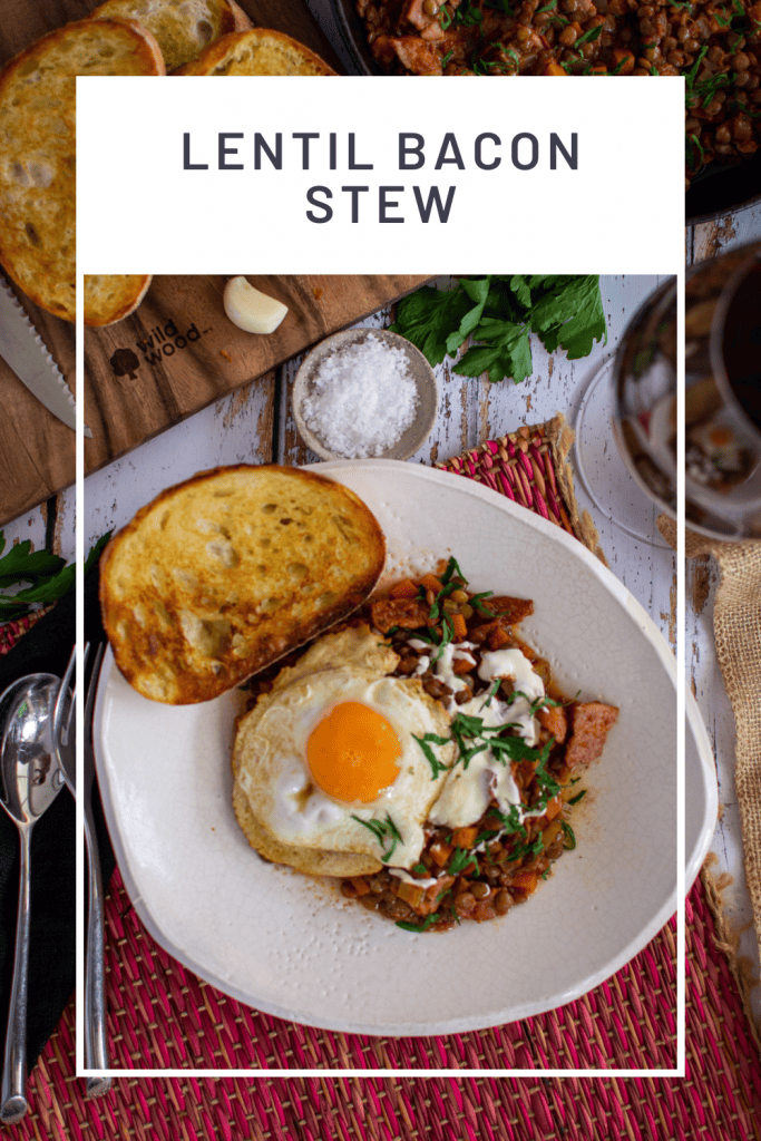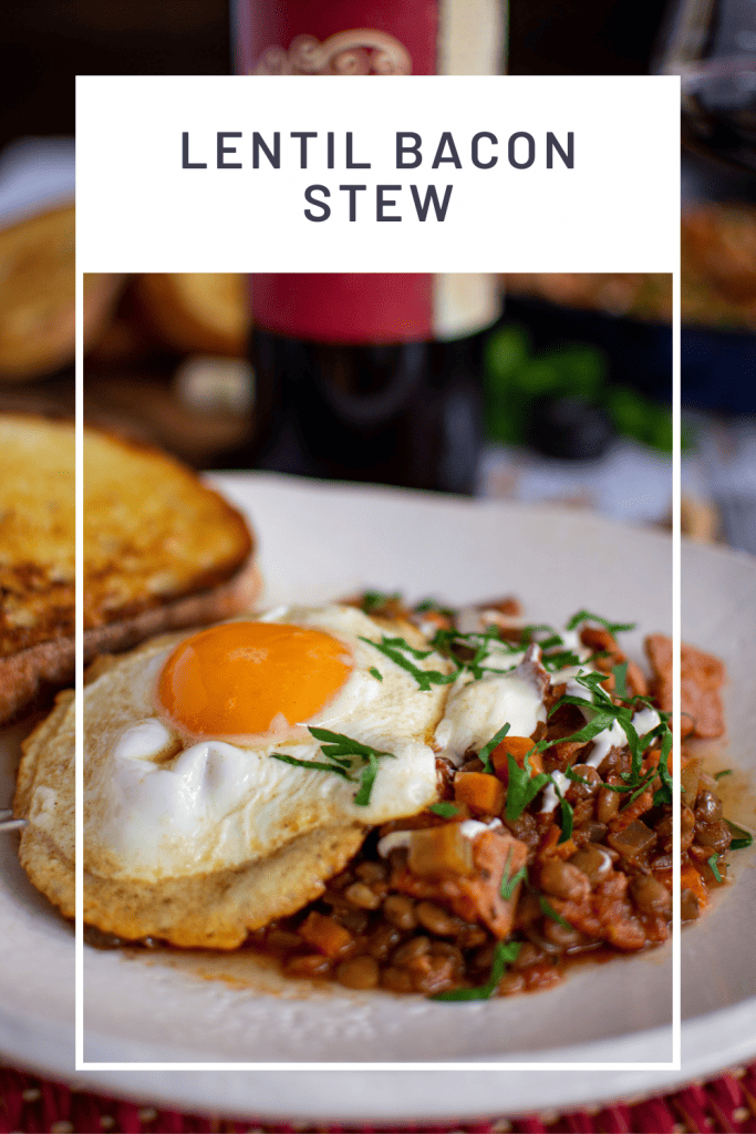 There you have it - delicious bacon lentil stew. As mentioned above, I add a drizzle of creme fraiche, a fried egg and some garlic-rubbed bread for a little extra WOW factor, but all these are optional.