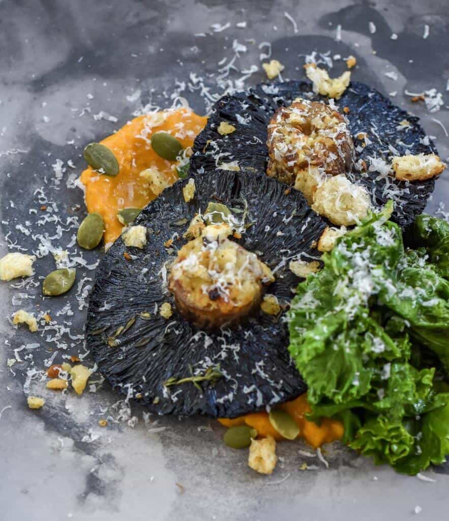 I took 2 recipes that I was particularly proud of when creating this one. Firstly, my whole roasted mushrooms. Simple to do, quick to make and flavourful to boot. Secondly, my smoked pumpkin hummus. This takes a little longer to make due to the smoking of the pumpkin but once that's done the rest takes mere moments to do. Hummus is a firm favourite in our household so with the addition of kale, parmesan cheese and pumpkin seeds my roasted mushroom appetizer was a HIT!