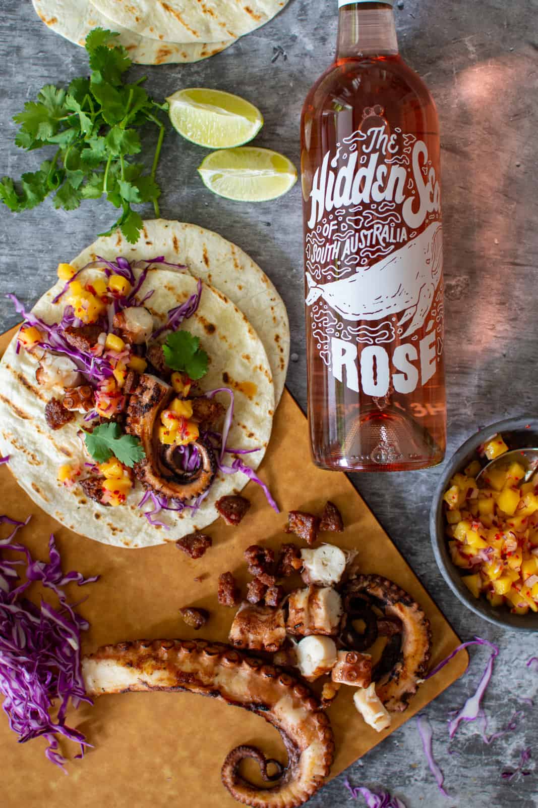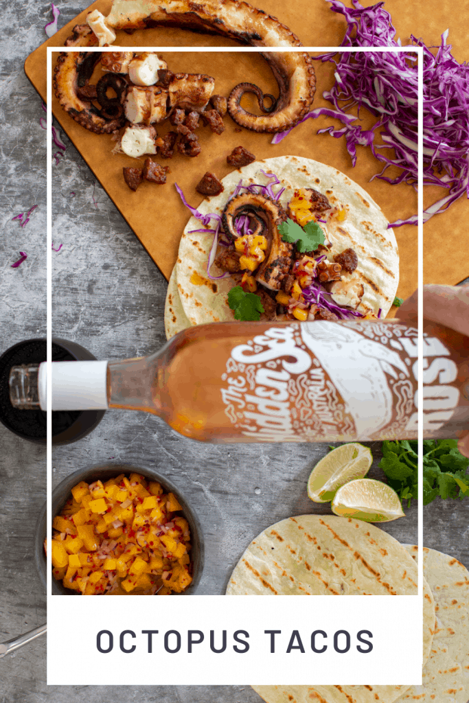 Naturally, when I was looking for a dish to pair with a wine called 'the hidden sea' I had to choose a seafood related dish and making octopus tacos was always in the back of my mind too. I hope you can agree (once you have made them) they are bloody epic!