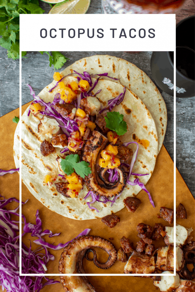 - once cooked (and cooled) the octopus can be frozen for future tacos so maybe cook a little extra as TRUST me, you will want to. Once defrosted just char on BBQ/grill to serve.