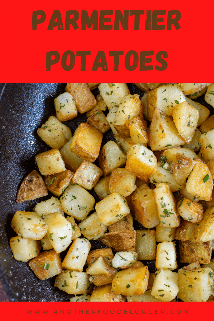 Parmentier potatoes are fancy little cubed potatoes. They are cooked in oil or sometimes duck fat with salt, garlic & herbs.