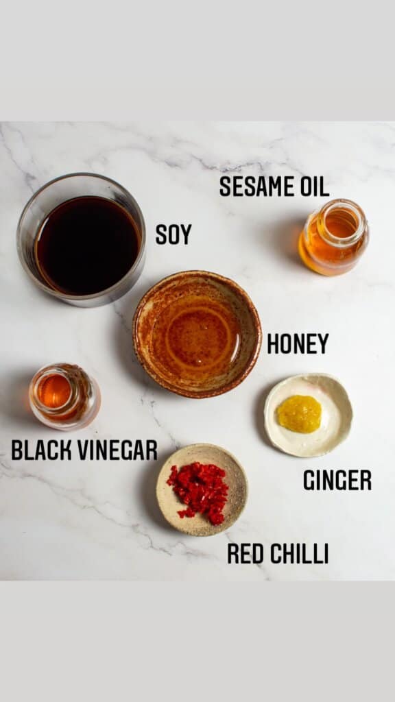It's all about the dipping sauce in my opinion. You can create the best filling, make the sexiest folds and cook them to perfection but without that final dipping sauce to lift everything then it just falls flat. My simple dipping sauce - HEAVY on the simple for these pork & prawn dumplings does just that. Ingredients you can pick up in any grocery store and that have a good shelf life too. Literally, just mix them all together and the job is done. For this recipe, I use Chinese black vinegar, soy sauce, fresh ginger, chopped chilli, a touch of honey and a dash of sesame oil. Mix them all together and it's job done!
