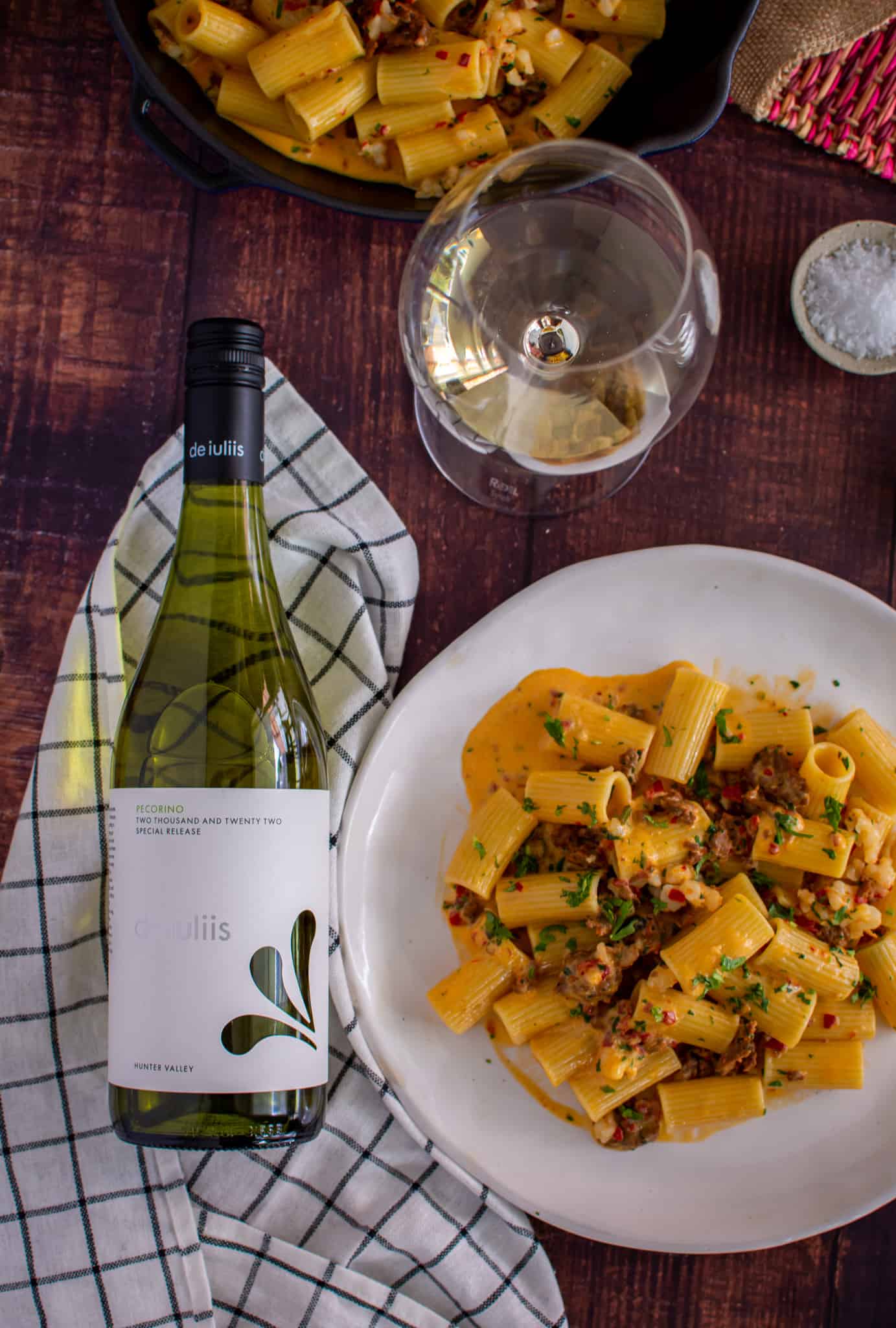 Now then, you didn't think I wasn't going to add a little pairing in, did you? This delicious bowl of creamy prawn and chorizo pasta was washed down with an excellent Pecorino from De iuliis wines!