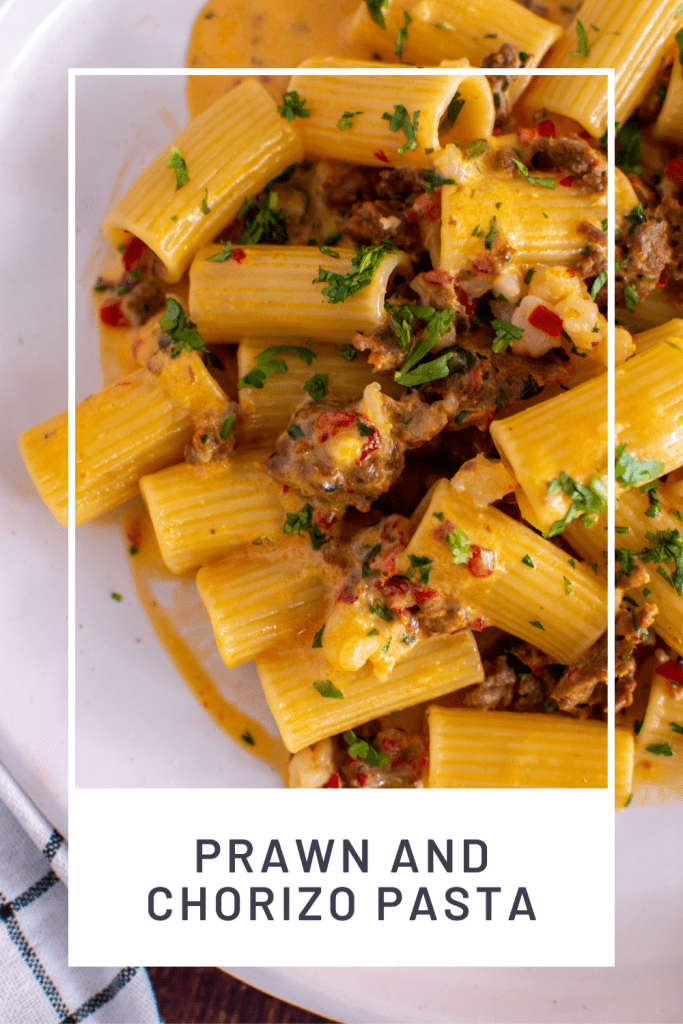If a creamy pasta dish that is packed with flavours, and is on the table in 20 minutes is your thing then you have come to the right place! This prawn and chorizo pasta dish is a new weekly addition to the house. To make it even better you can pick up all these ingredients pretty easily at your grocery store too 😉