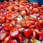 This slow-roasted tomato chutney is so simple to make it will make you question why you used shop-bought chutney in the first place! All you need to do is chuck some tomatoes, garlic, red peppers and olive oil into the oven and let them roast away on a low heat!