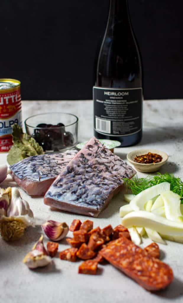 The wine I chose comes from Heirloom winery in McLaren Vale. The 2018 Anevo Fortress GTT I said it in a previous post and I'll say it again. I CAN'T get enough of their wines!! This particular blend is one that is starting to pop up a little more in at cellar doors and in wine shops. I for one am a fan. Personally, I like a good blend. Many like to let 1 grape sing but I like to see what someone else can bring to the party to improve things sometimes! This wine and my Spanish fish stew are a match made in heaven!