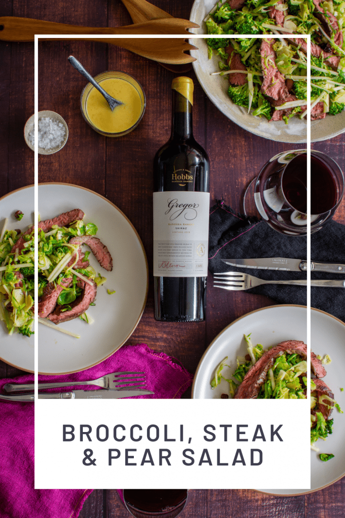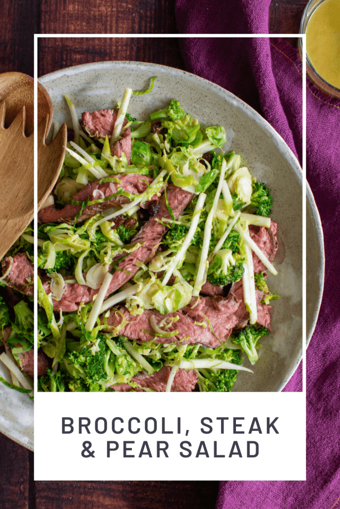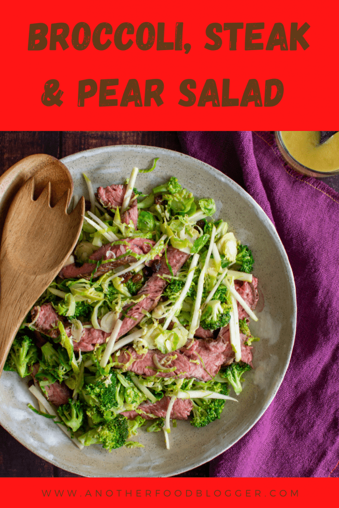 This delicious flap steak recipe is a great one to have up your sleeves, in fact flap steak in general and knowing how to cook it is one everyone should know about! Succulent perfectly cooked beef, crisp pear, crunchy broccoli and some raisins all tossed in a delicious maple mustard dressing. Salivating much?