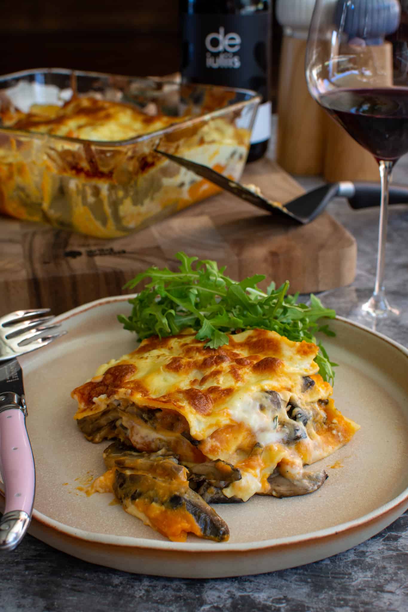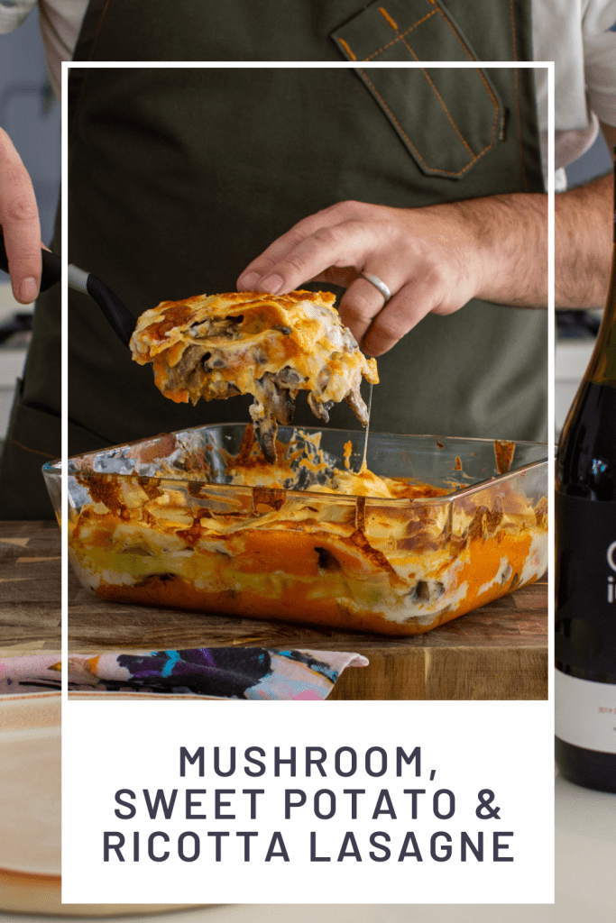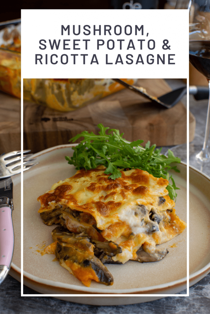 There is so much flavour from the earthy mushrooms, herbs, creamy ricotta, cheesy topping and that nice slight sweetness from the sweet potato. It cooks quicker than your classic lasagne and is lighter on the wallet too!