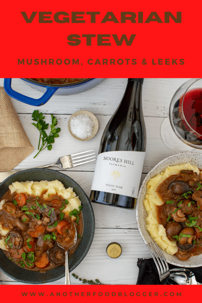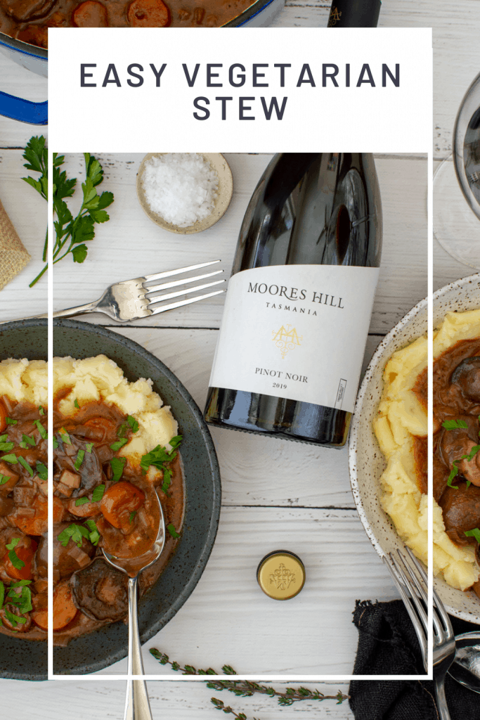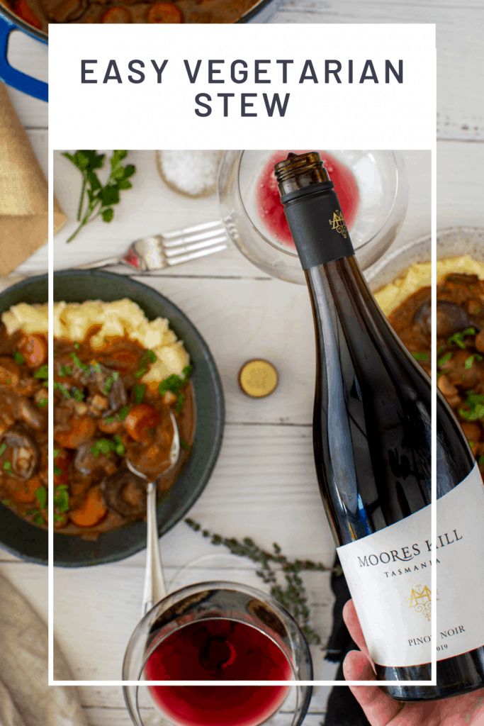 We are back again at the wonderful Moores Hill Estate in Tasmania. I first visited them about 3 years ago now and LOVED their wines. So, to be working with them now puts just as much of a smile on my face as does eating this delicious vegetarian stew whilst sipping on their 2019 Moores Hill Pinot Noir.