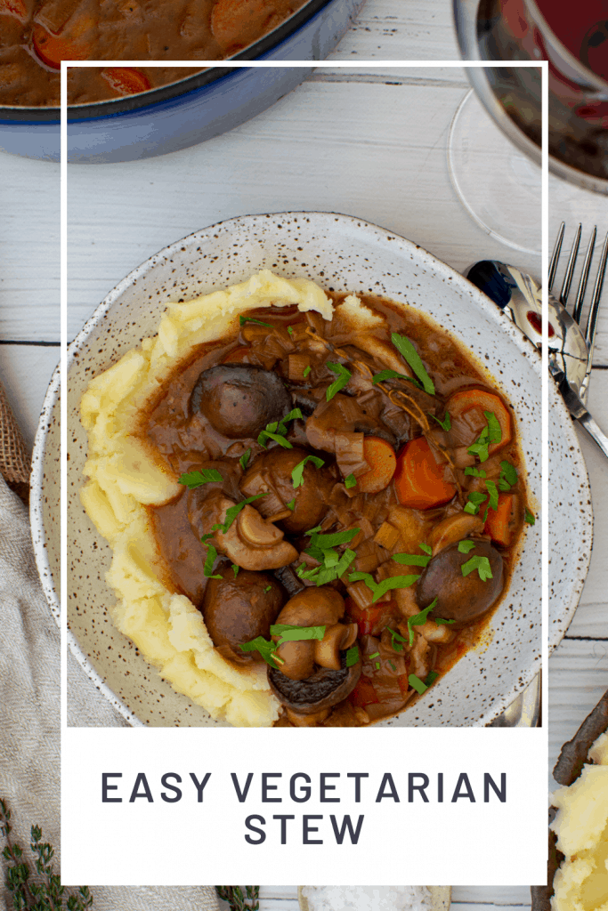 - the stew is vegetarian – to make it vegan just omit the butter or use vegan butter for the mashed potatoes