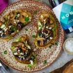 Place a spoon of edamame mix into toast, top with mushrooms, feta, drizzle of olive oil and a sprinkle of parsley