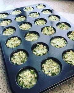 Grease the mini muffin tray with the olive oil. Using a piece of kitchen towel to rub in each muffin hole.