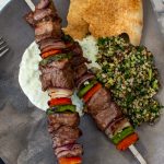 Cook the skewers on direct heat on the BBQ @200c for 6-8 minutes, turning every 2 minutes for even cooking
