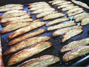 seasoning them as soon as they are out of the oven is a must as the salt will coat the potatoes perfectly at this stage