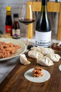 Place 1 tbsp of pork mixture into center of the dumpling