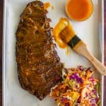 Remove the ribs from the smoker and wrap in foil adding butter, brown sugar & honey