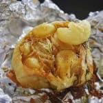 Using a serrated knife chop the top off the garlic to expose the bulbs - roughly 1/4 off the top